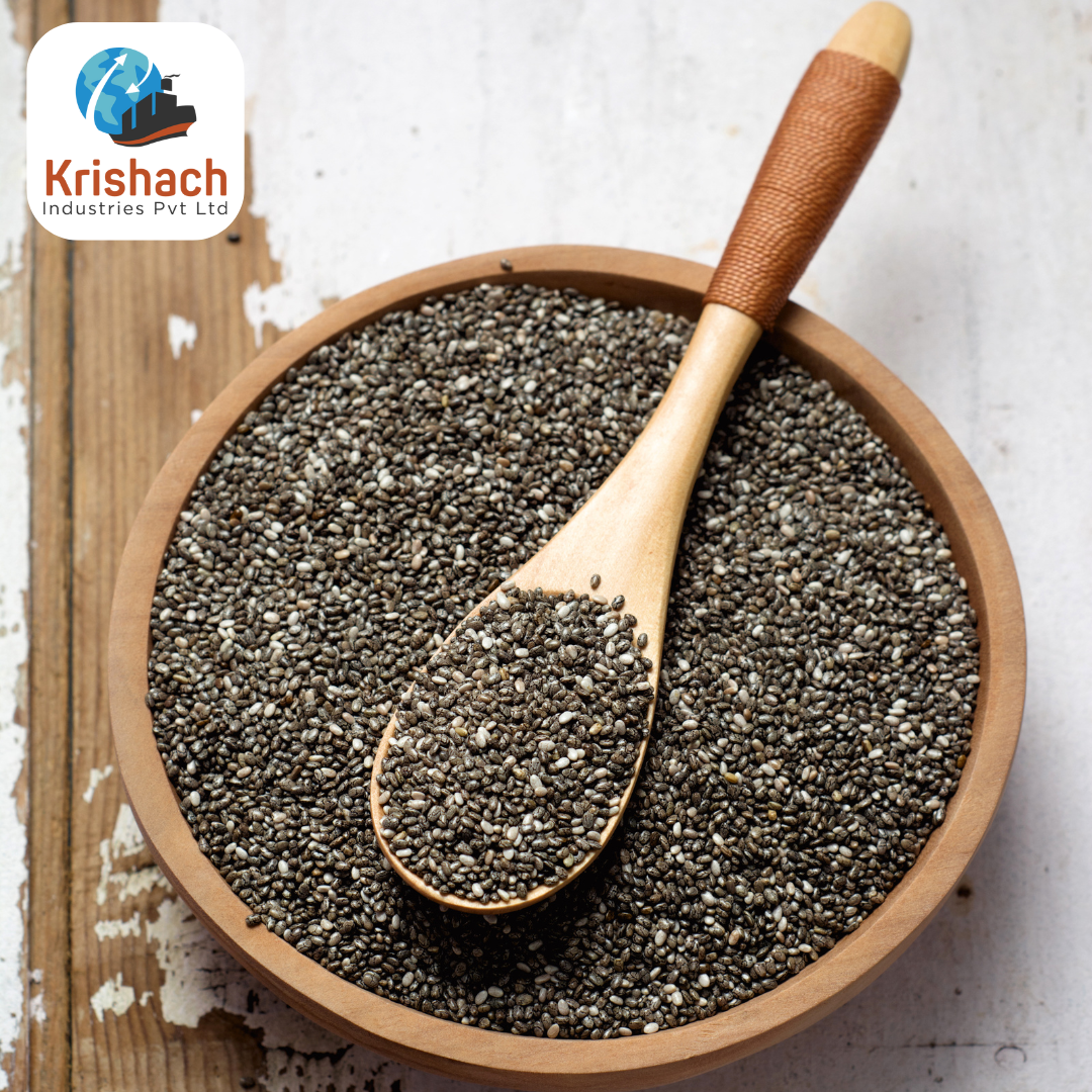Krishach Industries Pvt. Ltd. is proud to export premium-quality Chia Seeds from India to global markets. Chia (Salvia hispanica) is a gluten-free, nutrient-rich superfood highly valued for its Omega-3 content, high fiber, and complete protein profile. With rising global demand in the health food and wellness sector, chia seeds are ideal for food manufacturers, retailers, and nutrition-focused brands across North America, Europe, the Middle East, and Asia.